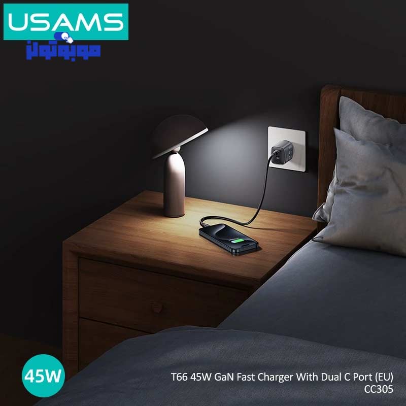 در ساخت شارژر USAMS CC305 از فناوری GaN یا نیترید گالیوم استفاده شده است. این فناوری، علاوه بر بهبود راندمان انرژی، باعث کاهش تولید حرارت میشود.